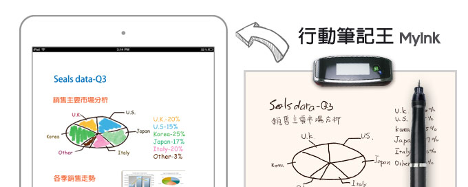 長篇大論的會議記錄還在用鍵盤逐字輸入?旅遊生活的點滴想要即時分享?課堂記下的學習重點希望能夠數位整理?蒙恬【行動筆記王MyInk】讓任何紙張筆記和塗鴉輕鬆變成可編輯數位檔案,搭配iPhone、iPad與PC,無論您是上班族、學生或部落客,出外或在家,隨時隨地延伸無限應用。